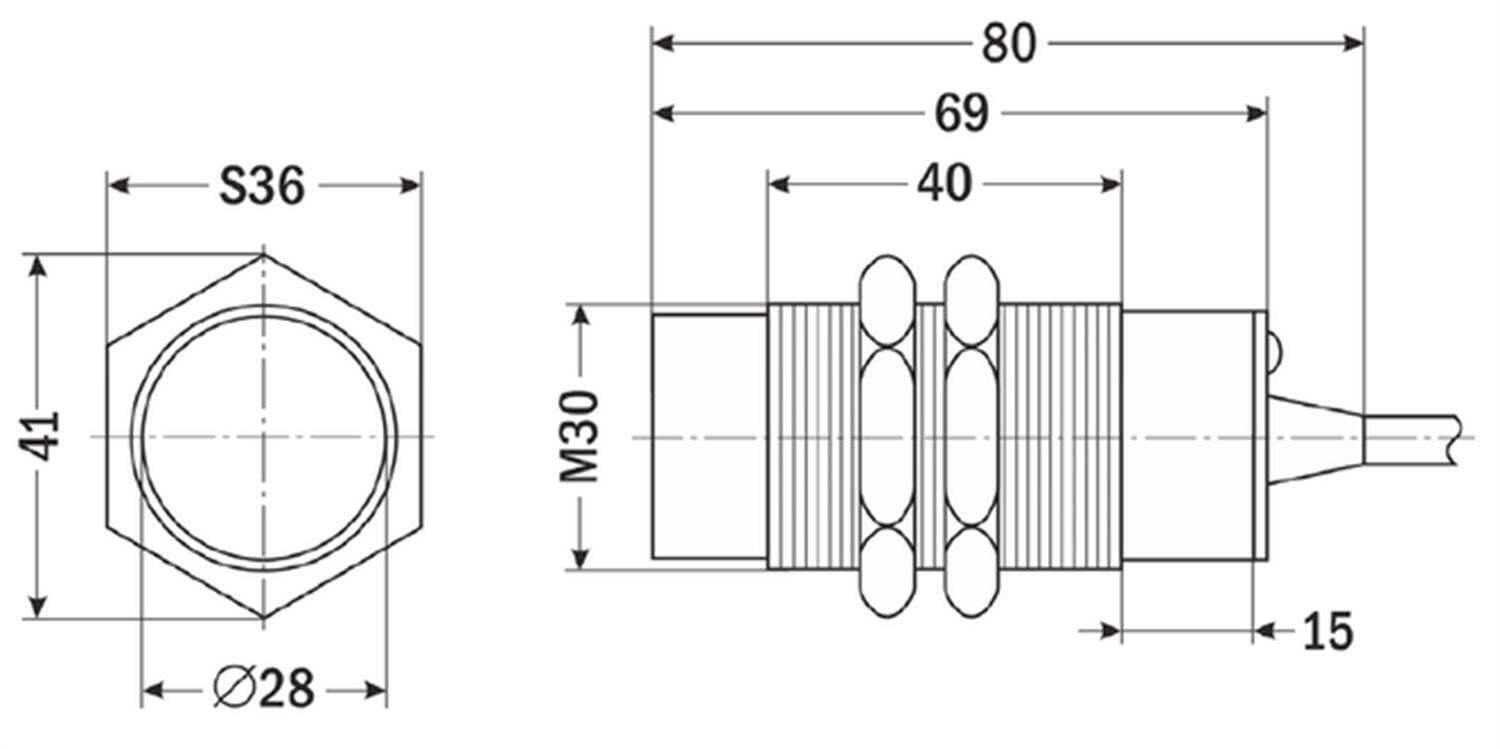 Индуктивный бесконтактный датчик AR-LM30-2015 применяется в качестве конечного выключателя, датчика положения, датчика оборотов и количества продукции в автоматических линиях, станках и т. п., а также для мониторинга промежуточных или конечных положений металлических частей, узлов и механизмов.